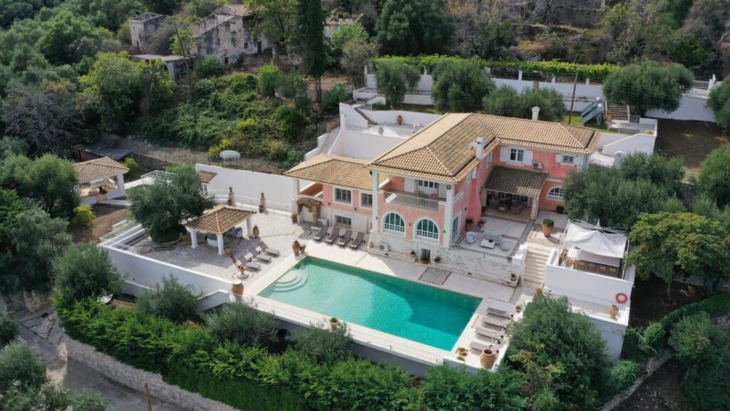 Four-bedroom villa near Kassiopi with private pool, sea views, and close access to beaches and local amenities.