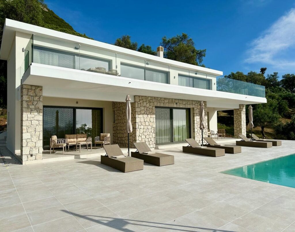 Luxury four-bedroom Paramonas villa with panoramic Ionian sunsets, infinity pool, and exceptional privacy.