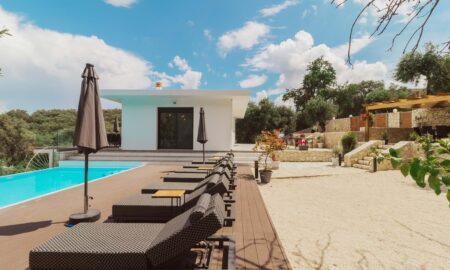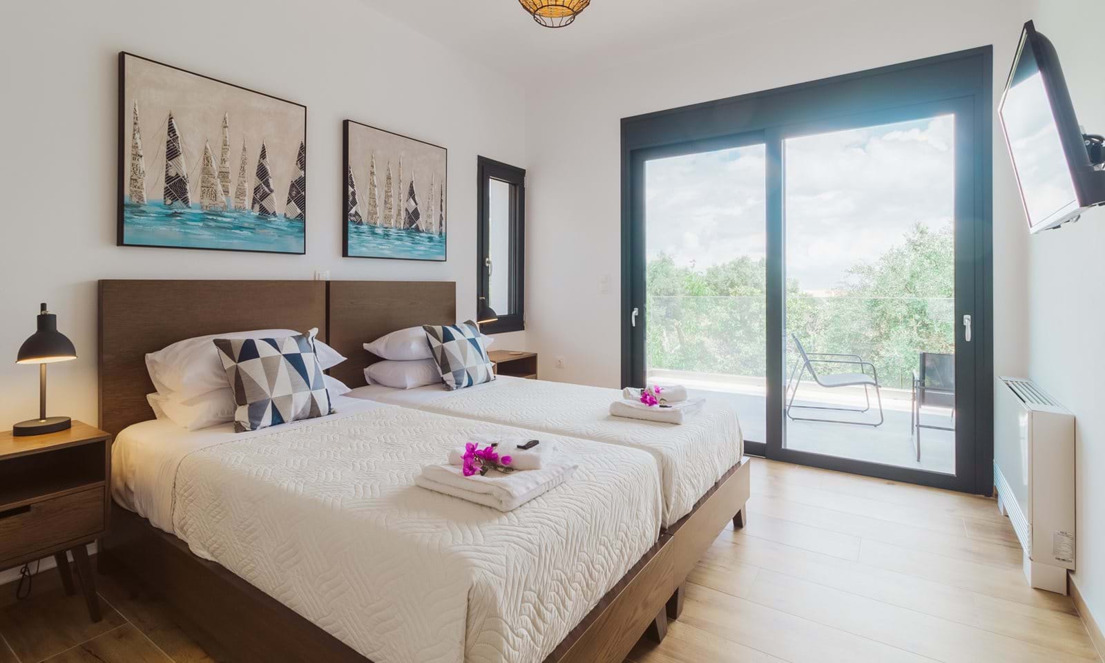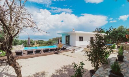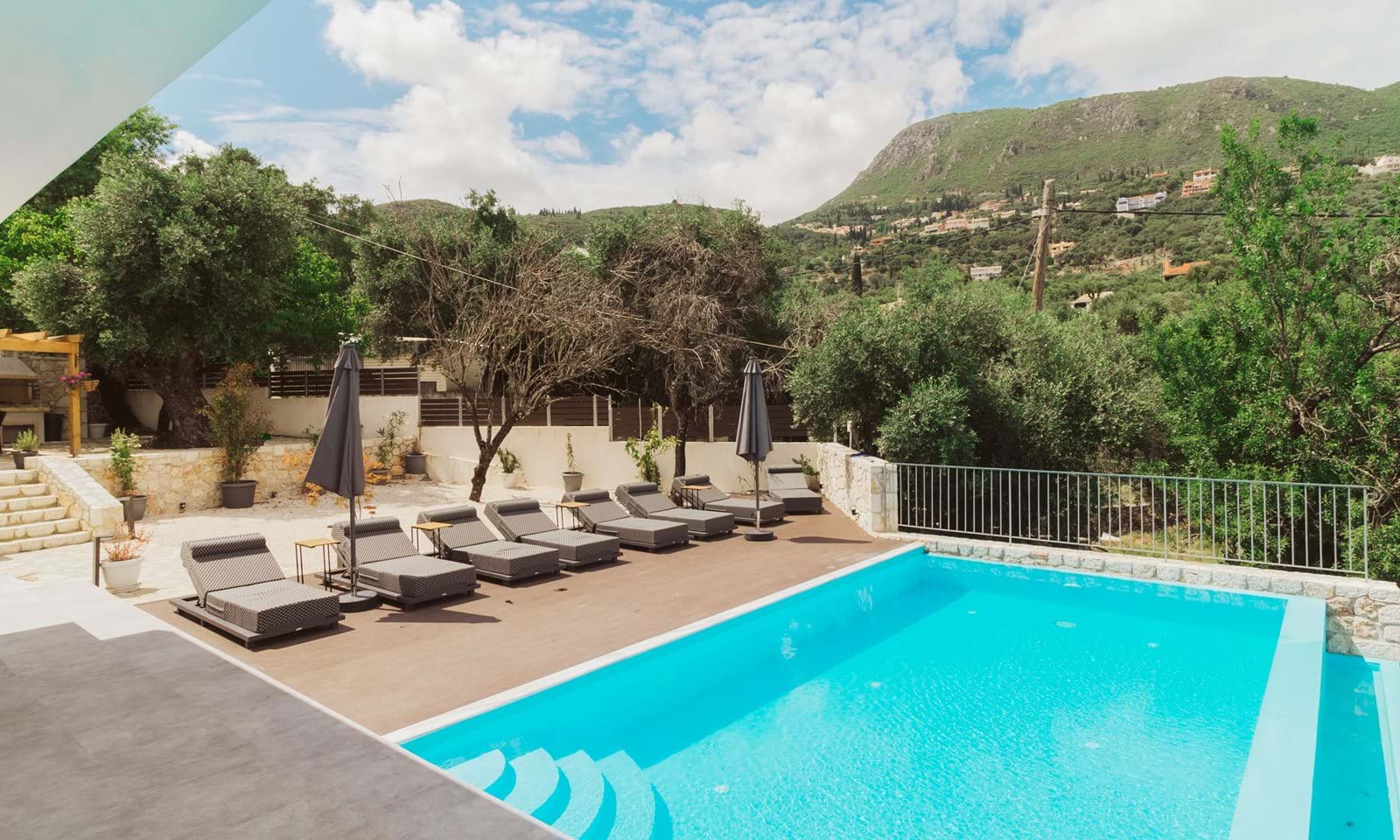 This villa is a serene retreat set amid the rolling countryside, where olive groves stretch toward the shimmering Ionian Sea. Just a short drive from the crystal-clear waters of Barbati beach, the villa offers a rare sense of privacy and calm, balanced beautifully with easy access to the coast.