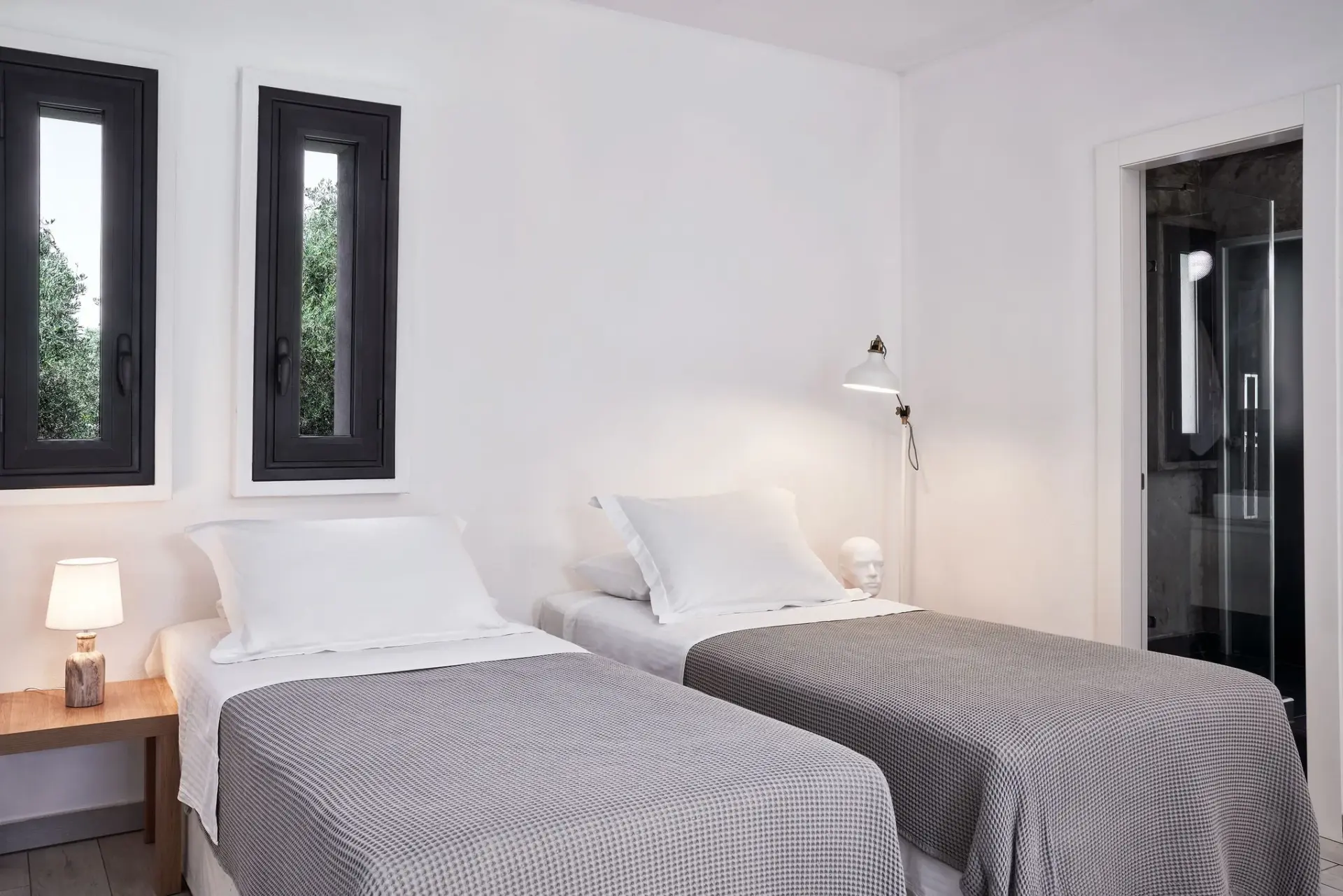 The first floor houses two bright bedrooms and a luxurious master suite with a private sea-view terrace that overlooks the stunning pool area.